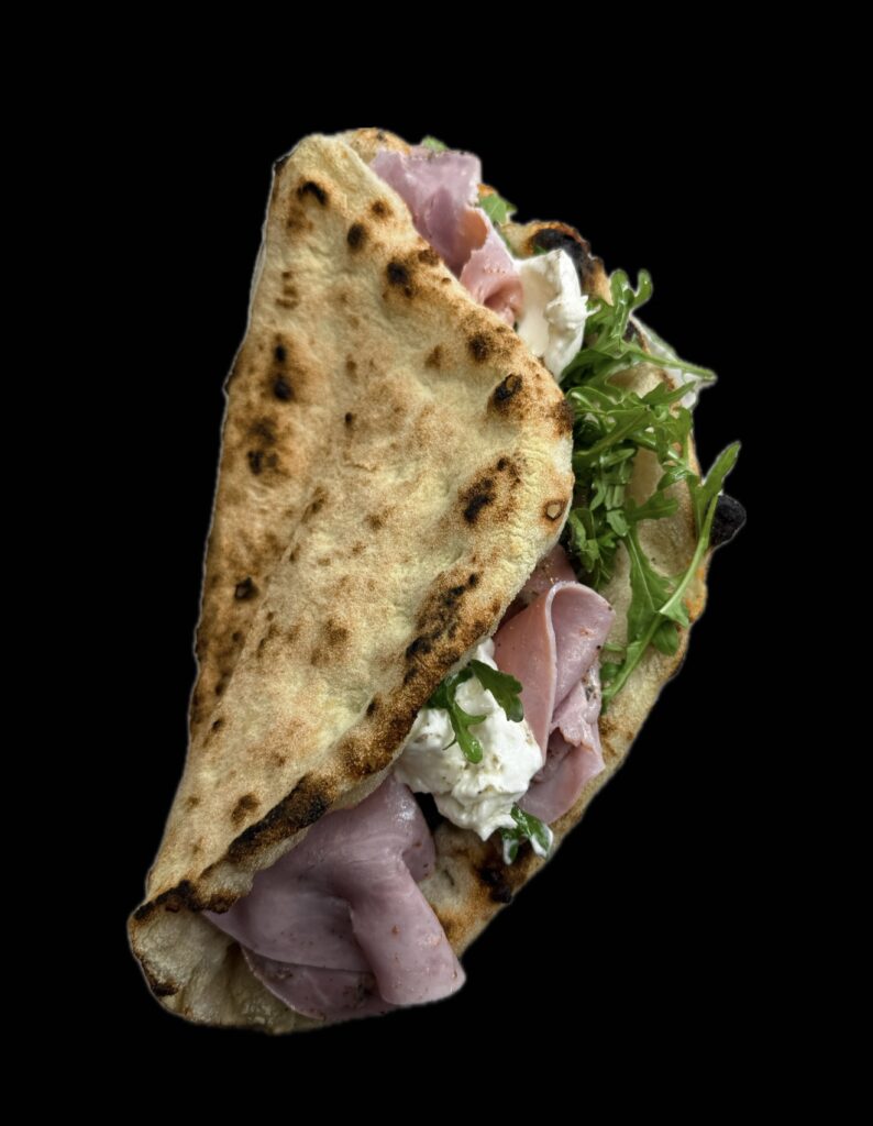 Fior di latte, crème de truffe, chiffonnade de jambon blanc, Burrata entière, roquette, huile de truffe